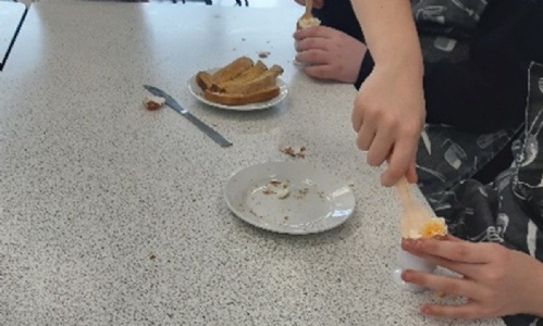 White group have been able to use the food technology room as part of their Preparing for Adulthood lessons. Initially, we made toast, just to learn our way around the room and locate equipment.
