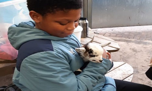 A couple of weeks ago we welcomed a new arrival on the farm - this adorable pygmy goat kid has captured everyone’s hearts. Her Mum is struggling to feed her so she is being bottle fed - as you can see, she isn’t missing out on the cuddles that everyone needs.
